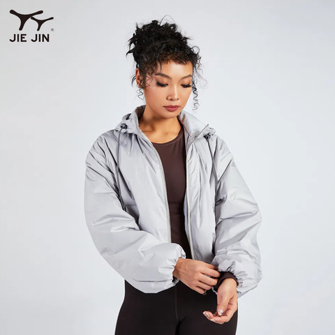 JIEJIN冬用カスタムロゴ女性用リバーシブル長袖タイトなサムホールワークアウトジップアップクロップヨガジャケット